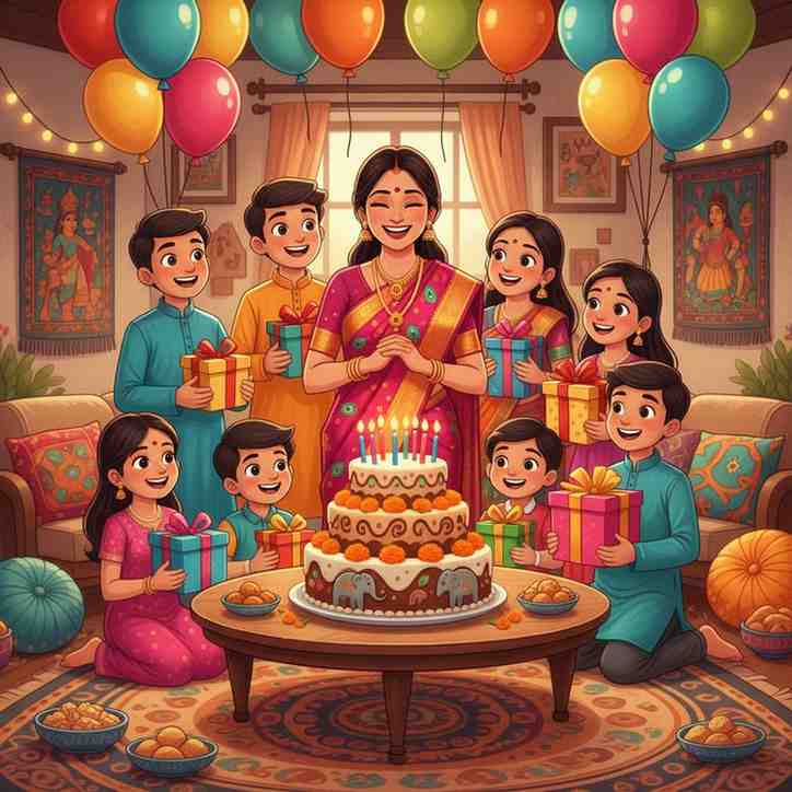 - Hinglish: “Happy Birthday Masi! Aaj cake hum khayenge aur diet aap kal se karna!”